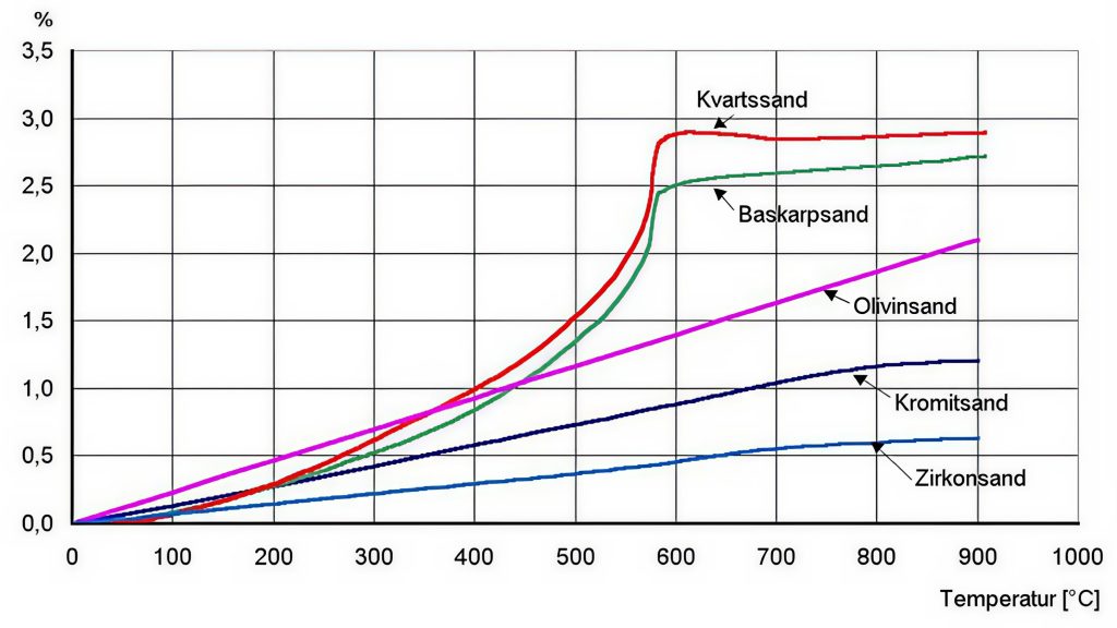 Detta i förening med kvartsens rent termiska expansion kan i olyckliga fall leda till brott i formväggen och gjutgodsfel, så kallade expansionsskollor, råttsvansar och sprickgrader. De andra ovan nämnda sandtyperna uppvisar inte denna kraftiga volymökning.