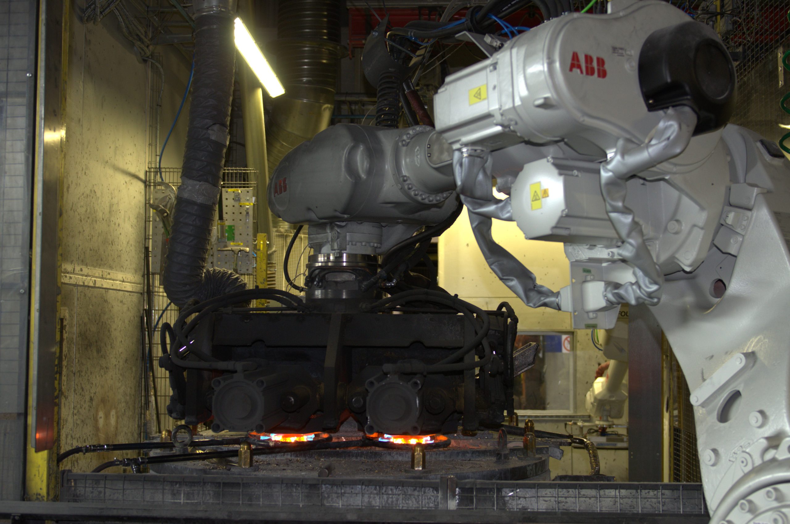 Figur 13. Robotiserad lågtrycksgjutning av termostatblandare i mässing (Ostnor).