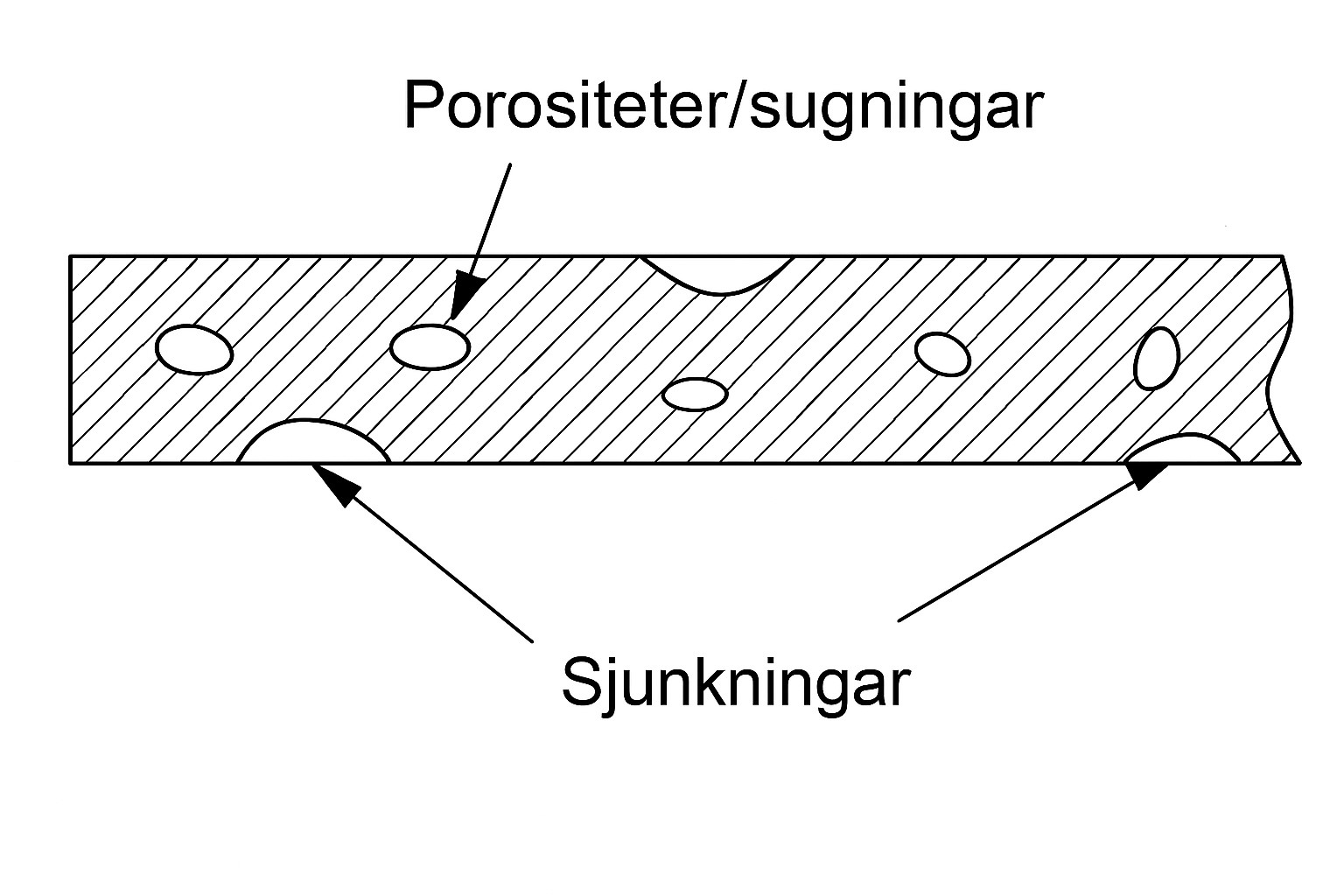 Figur 2. Olämplig utformning av gjutgods eftersom porer och sugningar kan uppkomma.