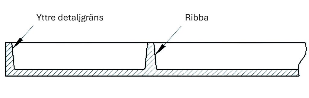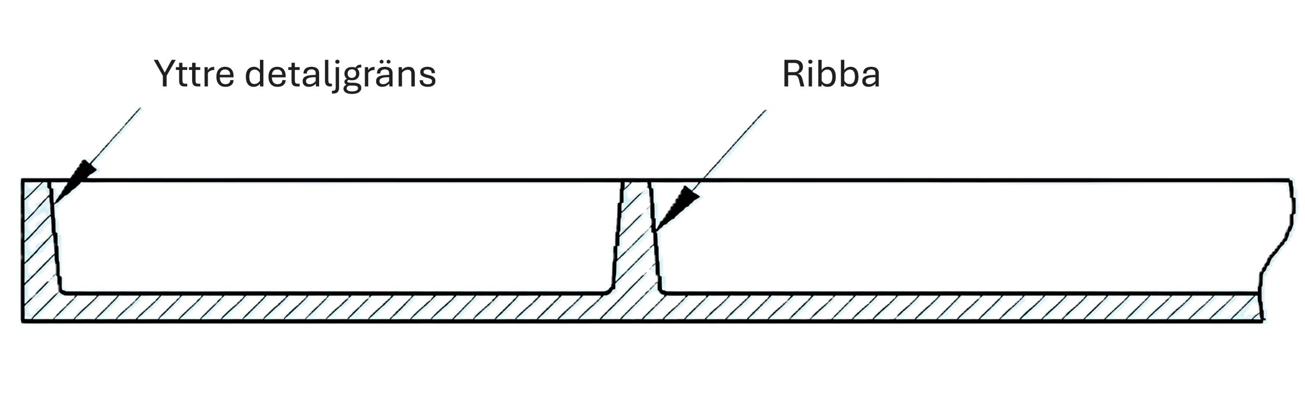 Figur 3. Gynnsam konstruktion med mindre väggtjocklek. Styvhet uppnås genom förstärkningsribbor.