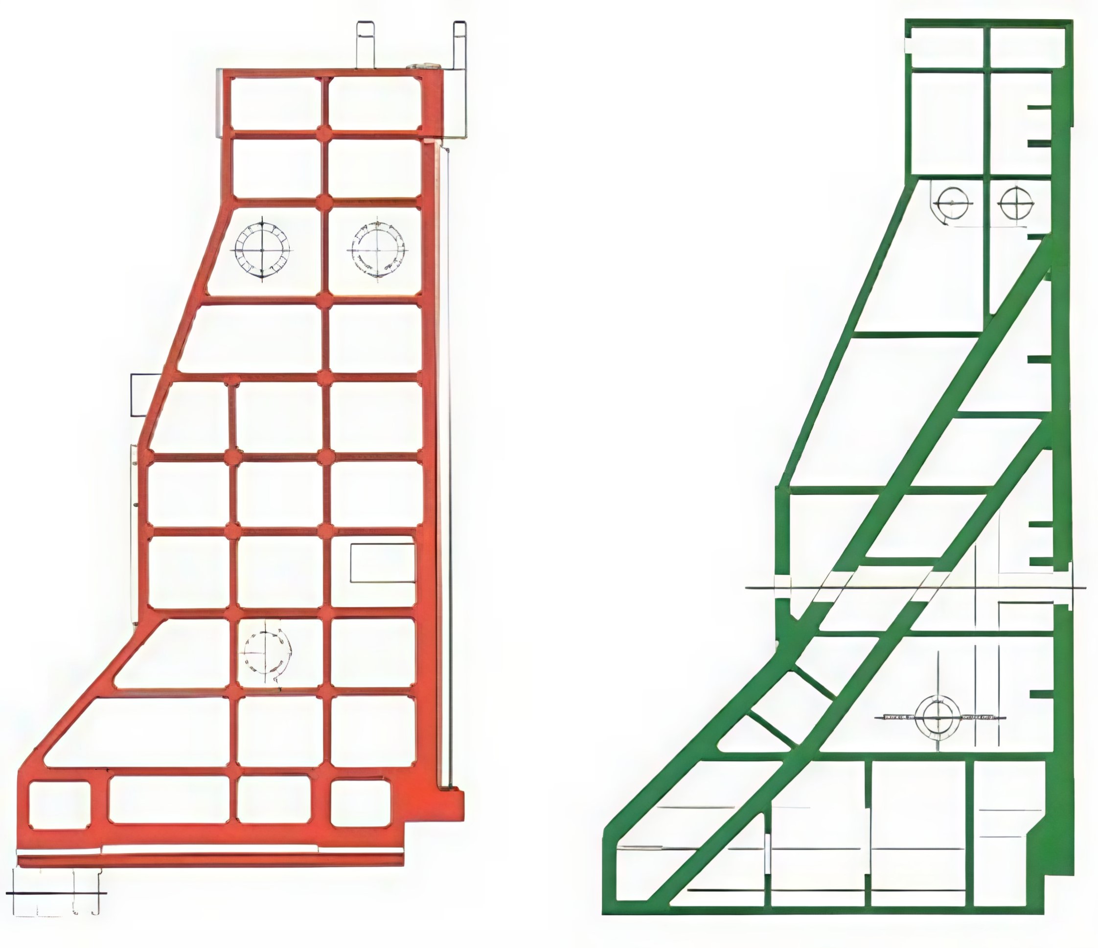 Vid slutet av utvecklingsprocessen erhölls en helt annan placering av förstärkningsfjädrarna än vad som normalt brukat tillämpas. En jämförelse mellan ursprunglig konstruktiv utformning och den FEM-optimerade lösningen, visar hur radikalt den geometriska utformningen ändrats. Beräkningsmässigt gav denna utformning en maximal formändring på 0,20 millimeter vid en godsvikt på 4,5 ton. Vid kontrollmätning i samband med leverans visade sig att formändringen uppgick till endast 0,018 millimeter.