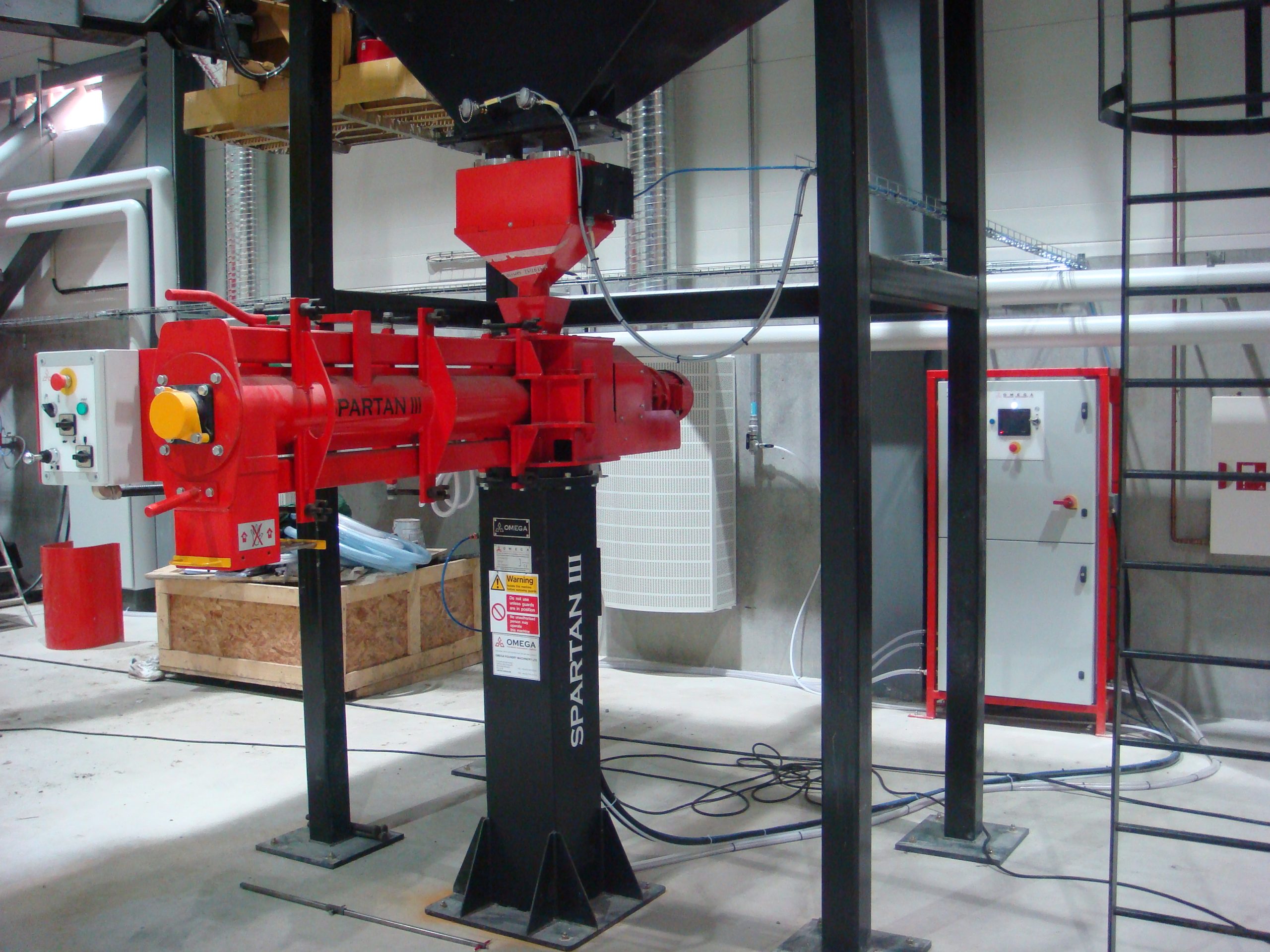 Figur 36b. Kontinuerlig skruvblandare, 35 tph med blandartråget öppet (Omega Foundry Machinery Ltd).