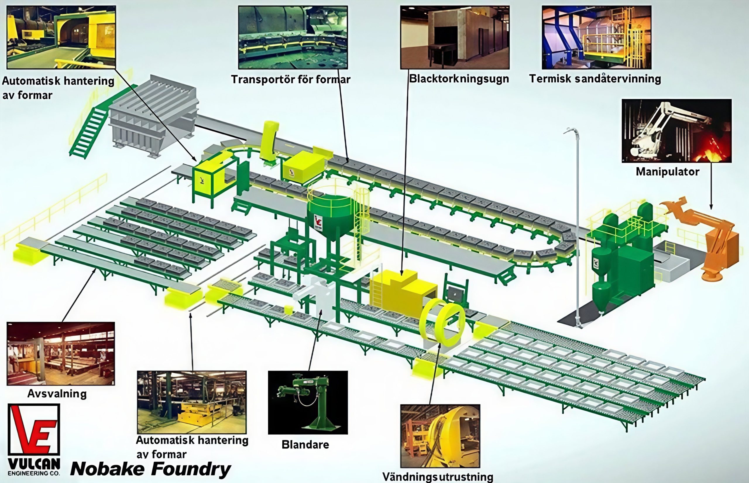 Även om det inte är möjligt att automatisera och mekanisera tillverkningen i samma höga grad som vid råsandsformning har många gjuterier byggt upp högproduktiva och miljövänliga formningsanläggningar baserade på kontinuerliga blandare. Följande figurer 37 till 39 ger några exempel.