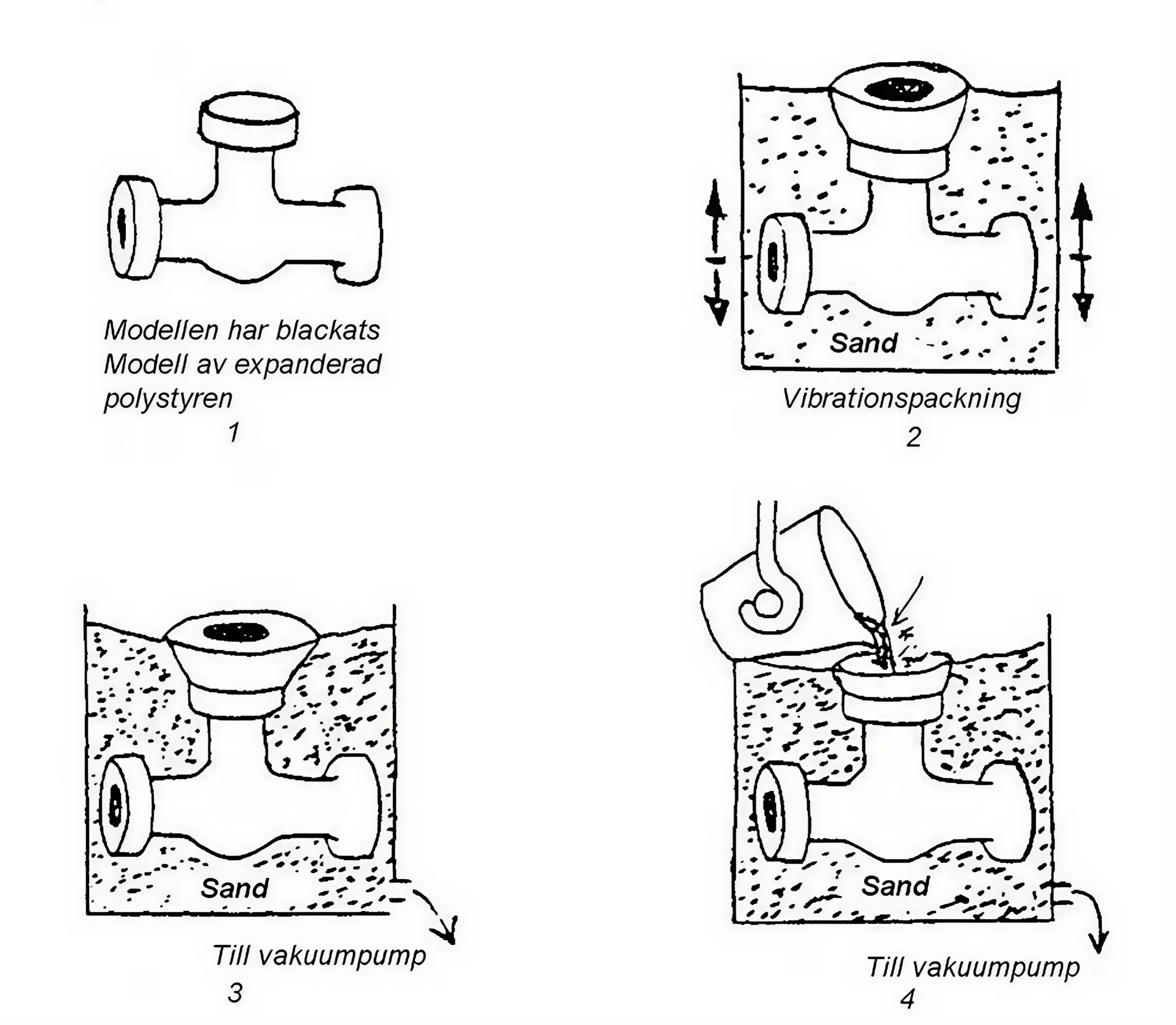 Figur 69. Olika operationssteg vid fullformsgjutning.