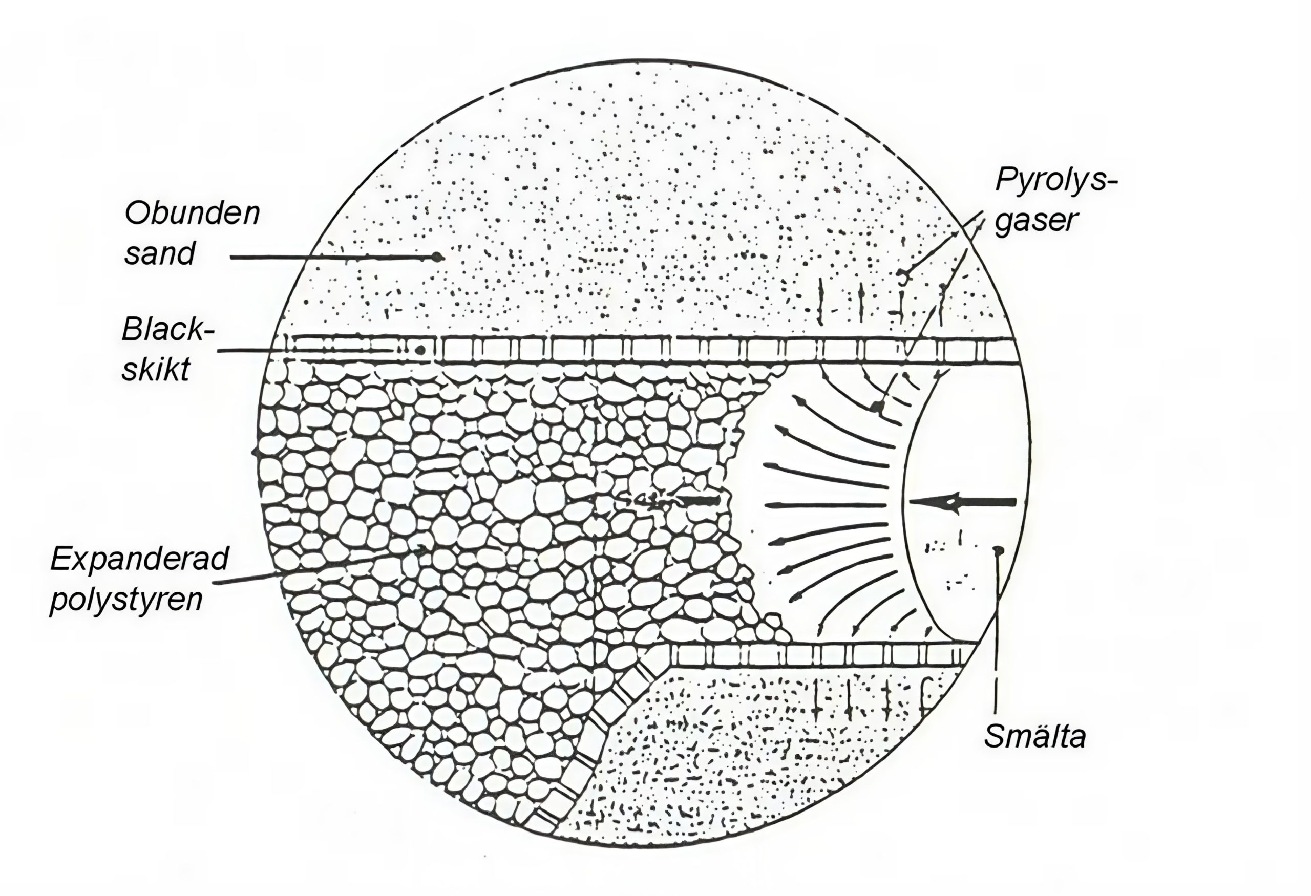 Figur 70. Schematisk figur av förgasningsprocessen under avgjutning.